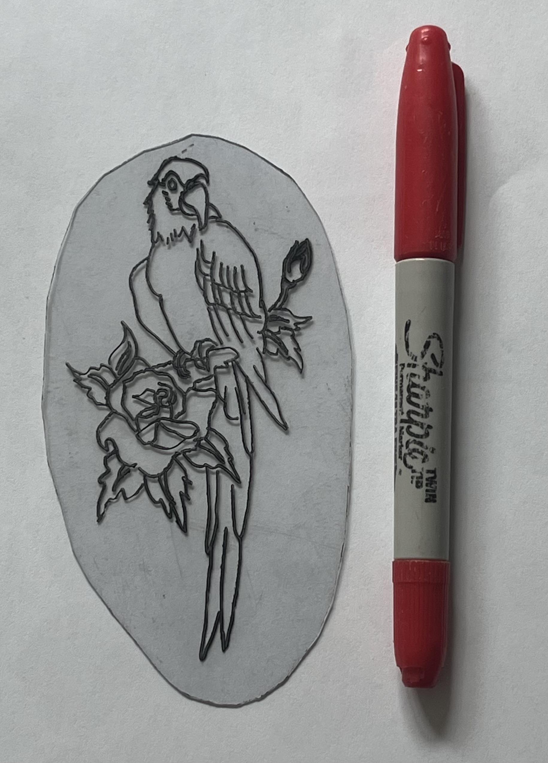 This classic traditional tattoo design acetate comes from the inheritance of Jeff Kowalski, former tattoo artist at the Sunset Strip Tattoo Studio 1974-1981